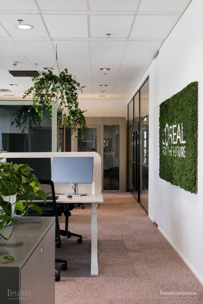 L’Oréal Finlandin pääkonttori Espoon Keilarannassa remontoitiin vastaamaan käyttäjien muuttuneita tilatarpeita. Tilamuutokset toteutettiin vastuullisesti mahdollisimman paljon olemassa olevia materiaaleja ja irtokalusteita hyödyntäen. Työskentelytilat varustettiin uusilla äänieristetyilllä vetäytymistiloilla. Rauhalliset neuvotteluhuoneet, trendikäs lounge ja huikeat merinäköalat luovat upeat puitteet työskentelylle.