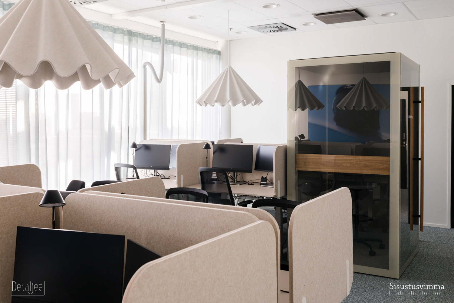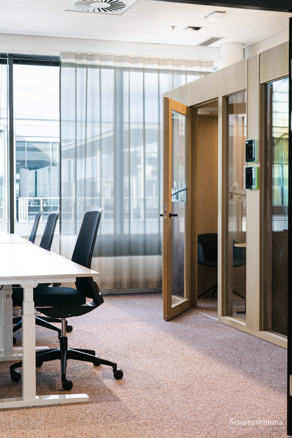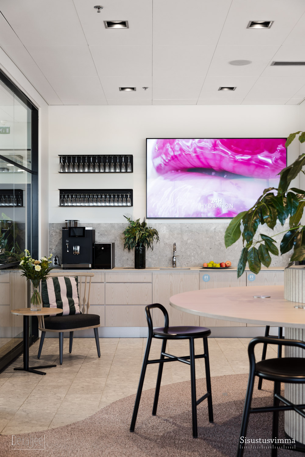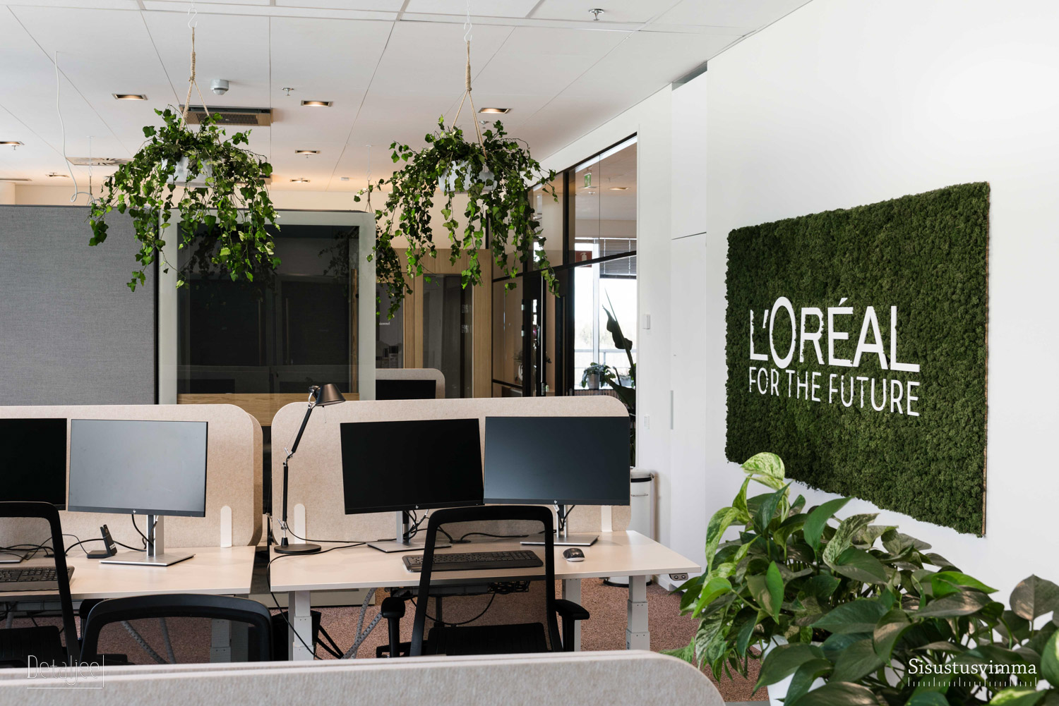 L’Oréal Finlandin pääkonttori Espoon Keilarannassa remontoitiin vastaamaan käyttäjien muuttuneita tilatarpeita. Tilamuutokset toteutettiin vastuullisesti mahdollisimman paljon olemassa olevia materiaaleja ja irtokalusteita hyödyntäen. Työskentelytilat varustettiin uusilla äänieristetyilllä vetäytymistiloilla. Rauhalliset neuvotteluhuoneet, trendikäs lounge ja huikeat merinäköalat luovat upeat puitteet työskentelylle.